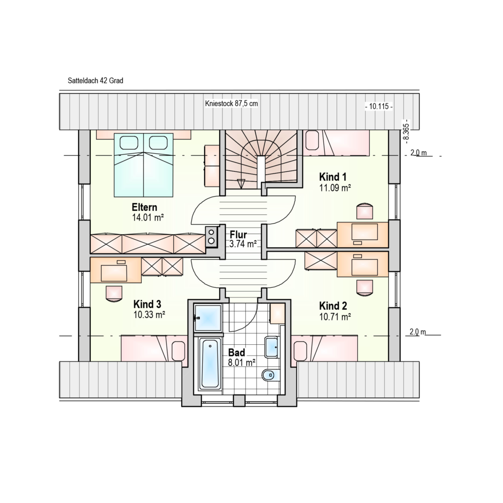 | Besonderheiten | Einfamilienwohnaus, 87,5 cm Kniestock, 42° Satteldach |