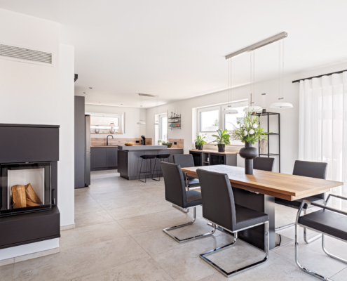 In unserem neuen Musterhaus sind wieder viele neue architektonische Ideen verwirklicht worden, so wurde die normale Rechteckform des Grundrisses kreativ ergänzt, um mehr Raum im Wohngereich zu schaffen…